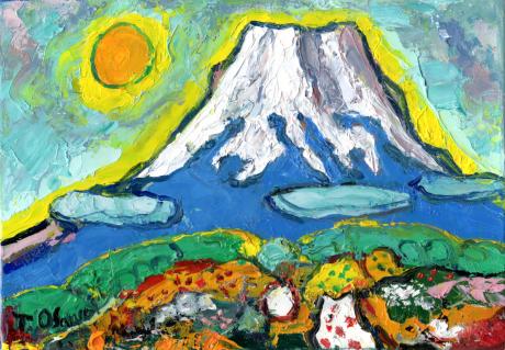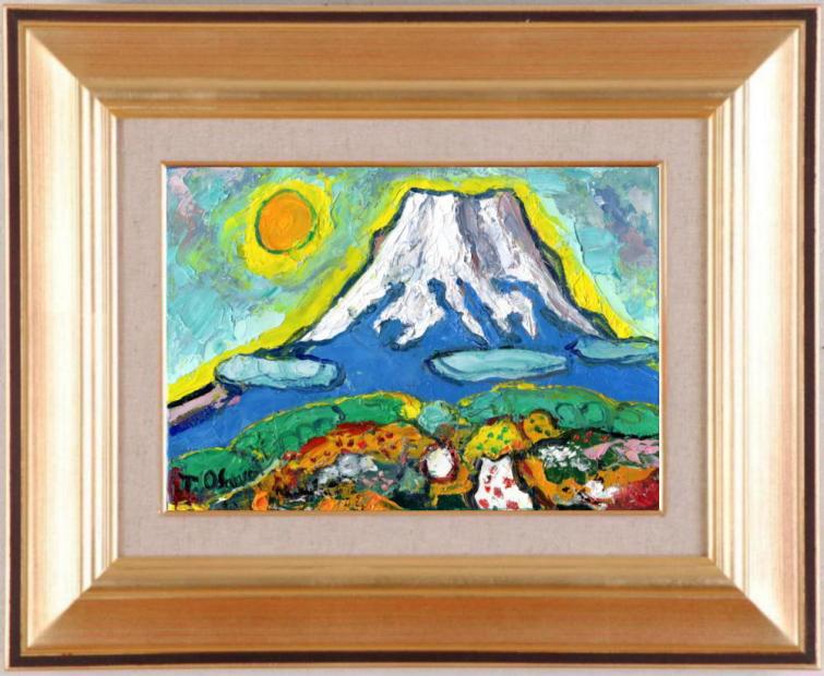 サムホールと呼ばれるサイズの小さな富士山の絵画ですが、油絵の具の分厚さで、とても迫力を感じます。