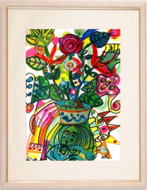 秋永清二さんがミクストメディアの絵画で描いた花の絵「賑やかな花束」をぜひご自宅のインテリアやプレゼントの絵としてご購入ください。