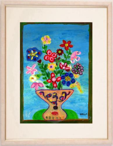 秋永清二さんがミクストメディアの絵画で描いた花の絵「ブルーの背景の花束」をぜひご自宅のインテリアやプレゼントの絵としてご購入ください。