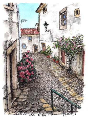 この水彩画の絵画のタイトル「カステロ・デ・ヴィデ」とは、正式には「Castelo de Vide」と書きます。