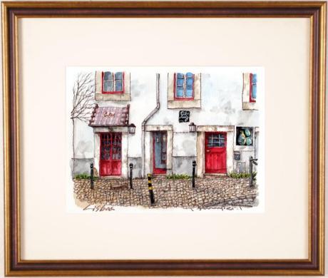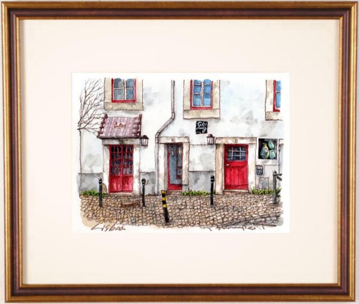 高橋文平さんが水彩画の絵画で描いたポルトガルの風景画「赤いドア」をぜひご自宅のインテリアやプレゼントの絵としてご購入ください。