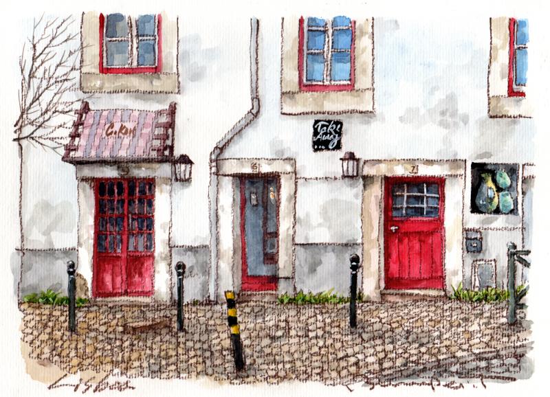 この水彩画の絵画は、ポルトガルの首都・リスボンの街で描かれました。