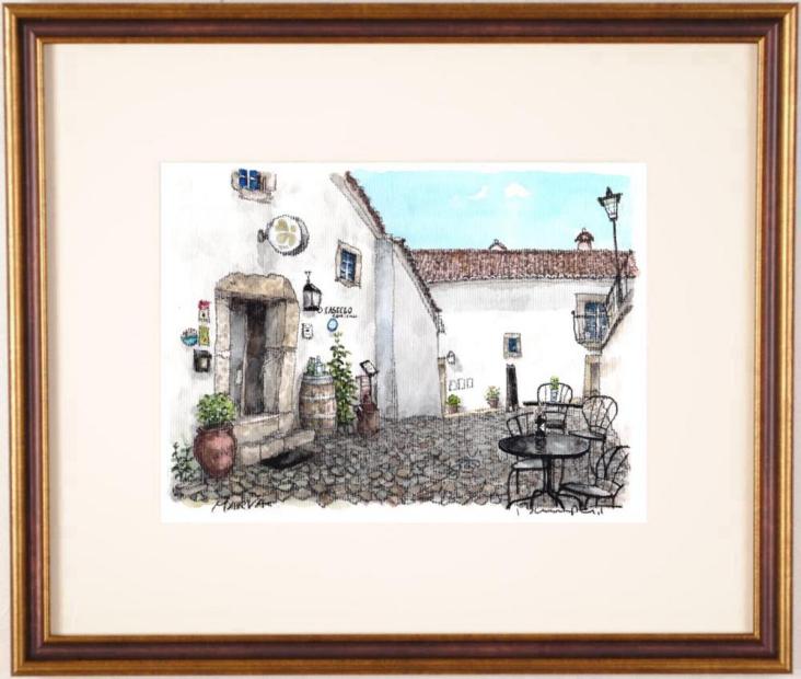 高橋文平さんが水彩画の絵画で描いたポルトガルの絵「マルヴァオンのカフェ・4」をぜひご自宅のインテリアやプレゼントの絵としてご購入ください。