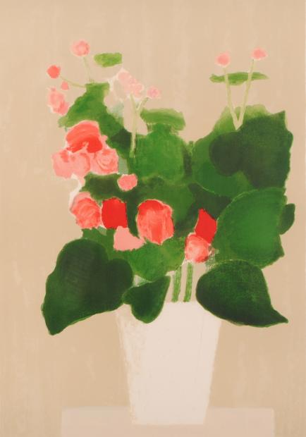 ベルナール・カトランがリトグラフの版画で制作した花の絵画「ベゴニアの花」は、1985年に制作されたリトグラフの版画です。