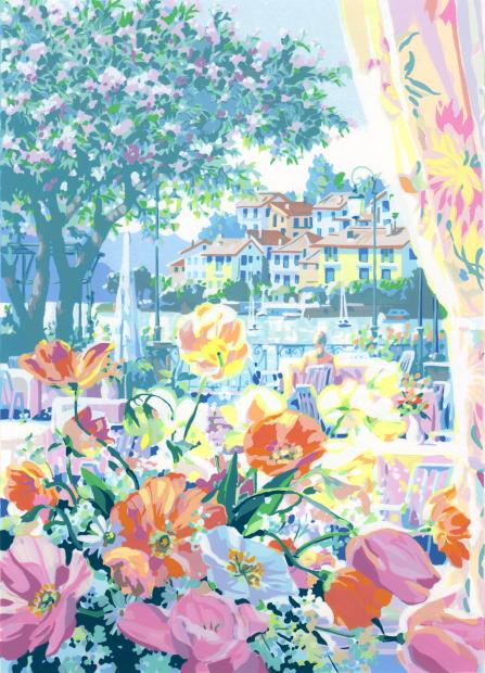 笹倉鉄平さんがシルクスクリーンの版画で制作したインテリアの絵画「春のマジョーレ湖」をぜひご自宅のインテリアやコレクションの絵としてご購入ください。