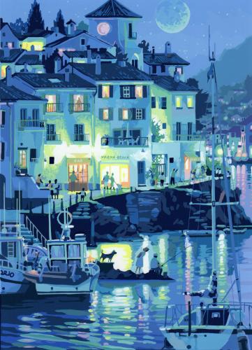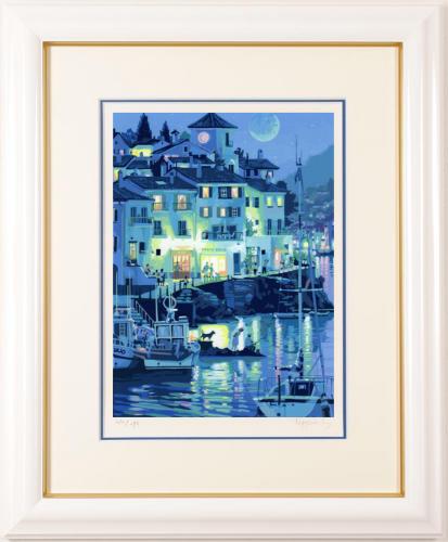 夜の明かりに照らされたカダケスの町の雰囲気が、とても素敵なインテリアの絵画です。