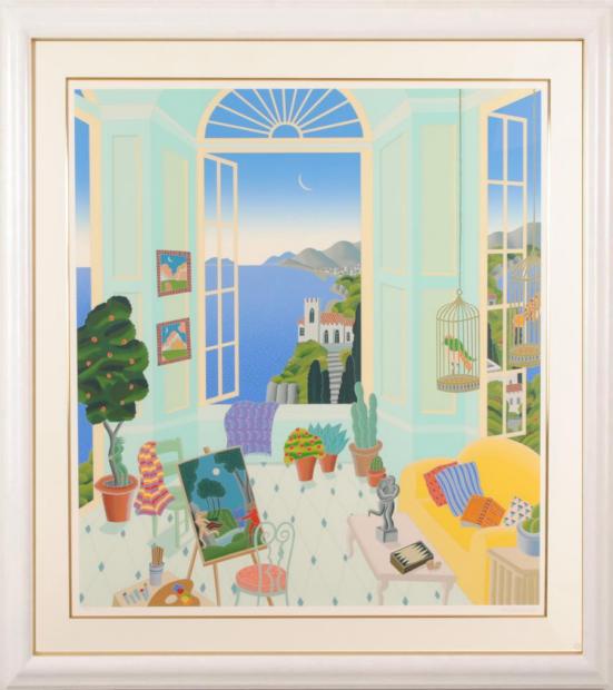 トーマス・マックナイトがシルクスクリーンの版画で制作したインテリアの絵画「グリーン・スタジオ」は、トーマス・マックナイトのアトリエを描いたような素敵なインテリアの絵です。