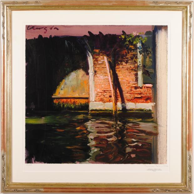 ホアキン・トレンツ・リャドのインテリアの絵画「ヴェニスの運河」は、1996年に制作されたシルクスクリーンの版画です。