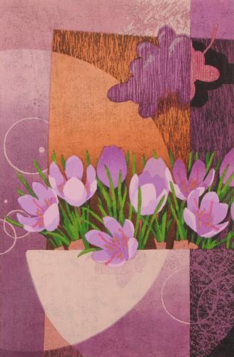 本荘正彦さんが木版画で制作したサフランの花の絵画「秋の夢」をぜひご自宅のインテリアやプレゼントの絵としてご購入ください。