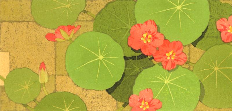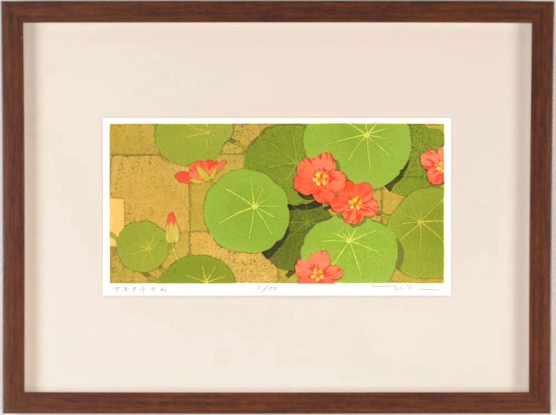 本荘正彦さんが木版画で制作した和の花の絵画「ナスタチウム」をぜひご自宅のインテリアやプレゼントの絵としてご購入ください。
