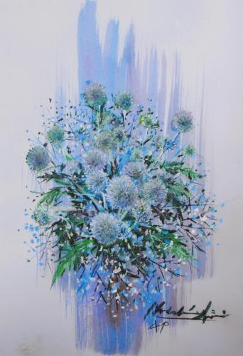 石井清先生がジークレーの版画で制作した花の絵画「ルリ玉アザミ・G」をぜひご自宅のインテリアやプレゼントの絵としてご購入ください。