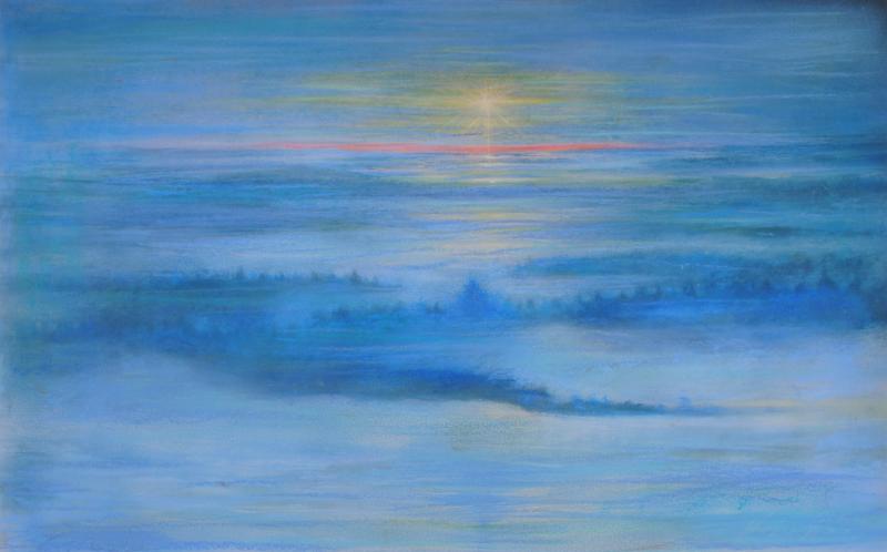 このインテリアの絵画「クーサモの太陽・2・G」は、その中でも一番寒い極寒の時期に描かれた作品です。