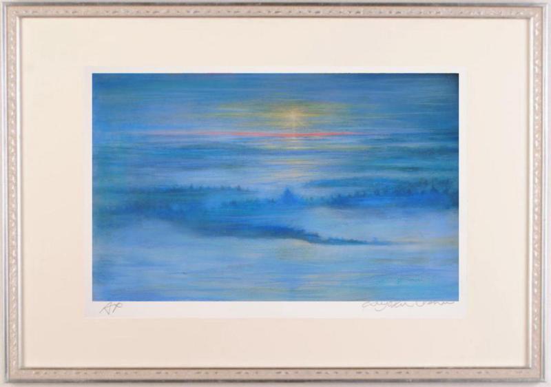 石井清先生がジークレーの版画に手彩を加えて制作したインテリアの絵画「クーサモの太陽・2・G」は、2025年に制作されたインテリアの絵です。