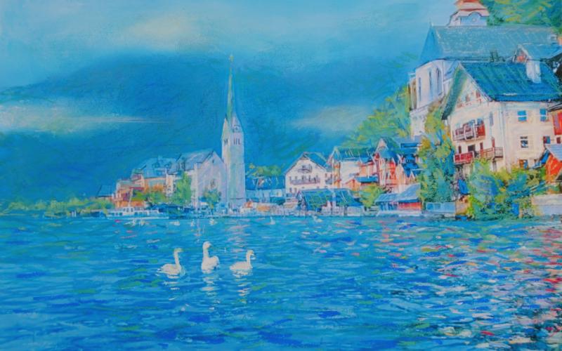 3羽の白い白鳥が、美しいハルシュタットの町にピッタリ似合っています。