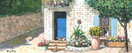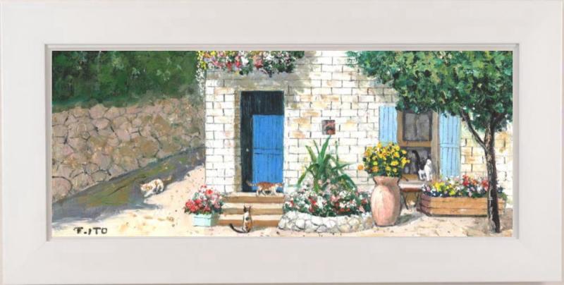 伊東拓実さんが油絵の絵画で描いた猫の絵「青い扉と4匹の猫」をぜひご自宅のインテリアやプレゼントの絵としてご購入ください。