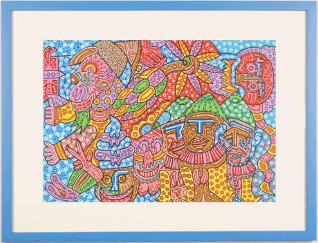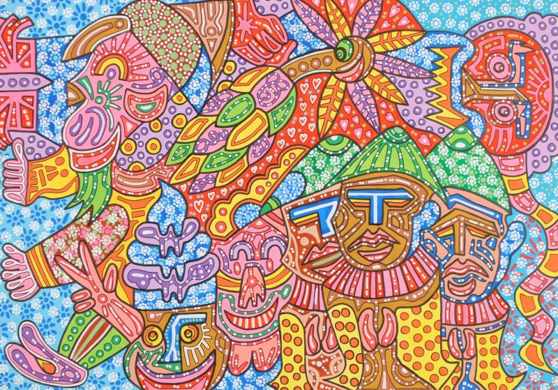 横山泰三さんの現代アートは、アクリル絵の具や水彩、ペンなどで描かれたミクストメディアの絵画です。