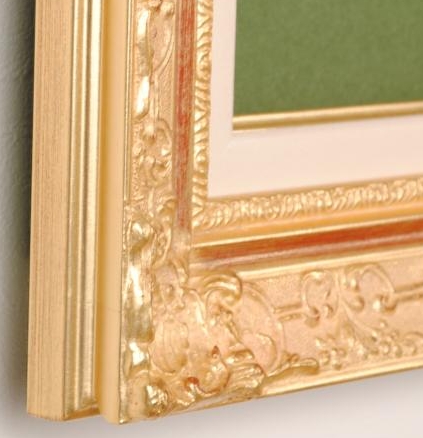 水辺に映った逆さの古城に、とてもインパクトを感じる油絵の絵画です。