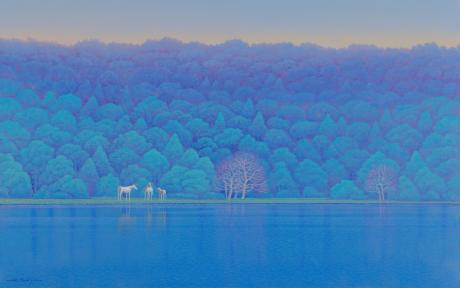 富谷一明(とみやかずあき)さんが油絵の絵画で描いた馬の絵「瀞(とろ)・2」は、1992年に描かれた白馬の絵です。