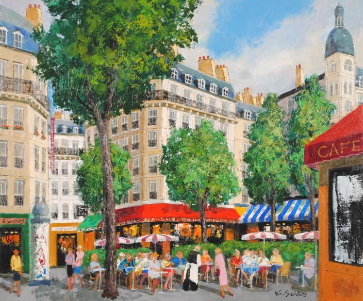 斉藤要さんが油絵の絵画で描いたフランスの風景画「パリのカフェ・2」をぜひご自宅のインテリアやコレクションの絵としてご購入ください。