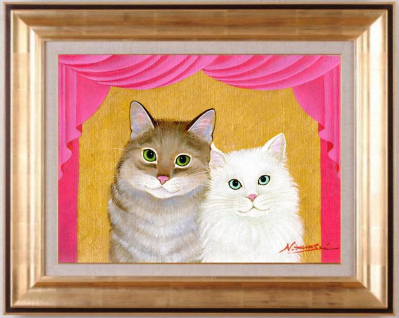 高橋伸子さんが油絵の絵画で描いた猫の絵「恋愛結婚です」をぜひご自宅のインテリアやプレゼントの絵としてご購入ください。