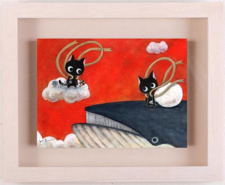 香月和夫さんがアクリル画で描いた猫の絵画「風にゃん雷にゃん図」をぜひご自宅のインテリアやプレゼントの絵としてご購入ください。