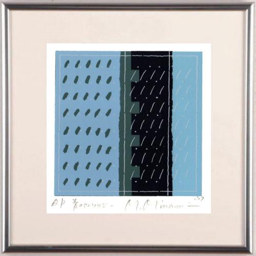 南正雄先生がシルクスクリーンの版画で制作した現代アートの絵画「青のアンソロジー」は、1997年に制作されたシルクスクリーンの版画です。