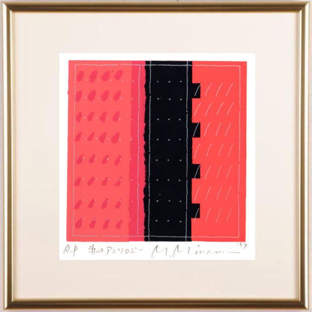 南正雄先生がシルクスクリーンの版画で制作した現代アートの絵画「赤のアンソロジー」は、1997年に制作されたシルクスクリーンの版画です。