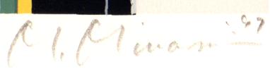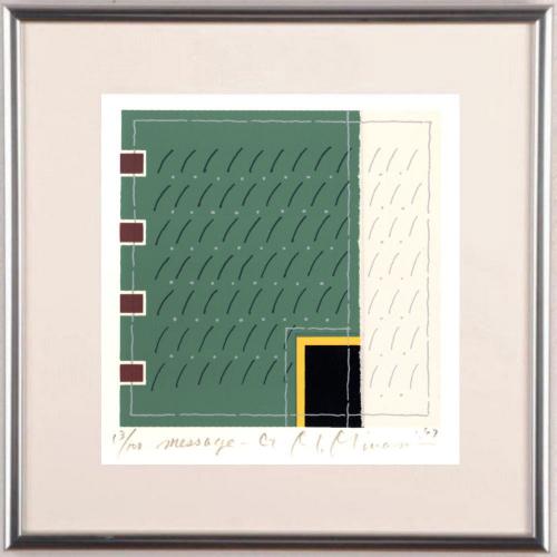 南正雄先生がシルクスクリーンの版画で制作した現代アートの絵画「メッセージ-G」は、1997年に制作されたシルクスクリーンの版画です。