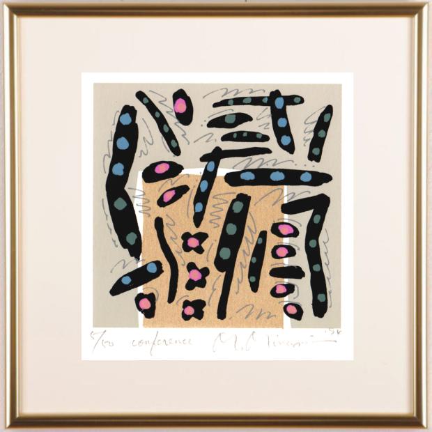 南正雄先生の現代アートの絵画「カンファレンス」は、1994年に制作されたシルクスクリーンの版画です。