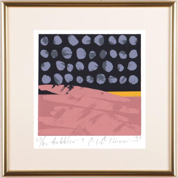 南正雄先生の現代アートの絵画「バブルス-T」は、1995年に制作されたシルクスクリーンの版画です。