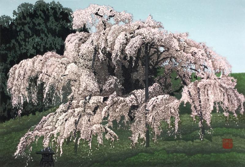 宮本秋風さんが木版画で制作した和の桜の絵画「三春の滝桜」をぜひご自宅のインテリアやコレクションの絵としてご購入ください。