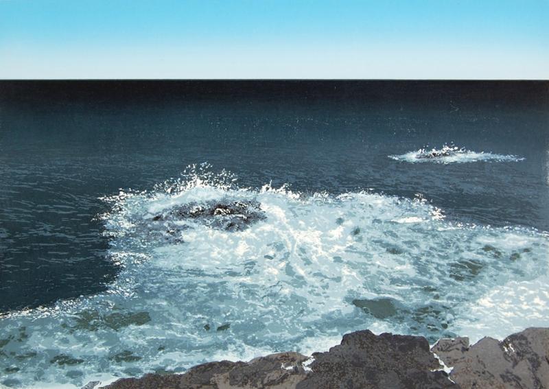 宮本秋風さんが木版画で制作した海の風景画の絵画「潮騒」をぜひご自宅のインテリアやコレクションの絵としてご購入くださいませ。