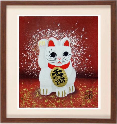 宮本秋風さんが木版画で制作した和のインテリアの絵画「招き猫」をぜひご自宅のインテリアやコレクションの絵としてご購入ください。
