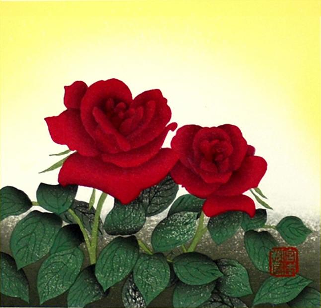 宮本秋風さんが木版画で制作した和の花の絵画「ばら」をぜひご自宅のインテリアやプレゼントの絵としてご購入ください。