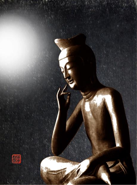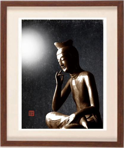 宮本秋風(みやもとしゅうふう)さんが木版画で制作したインテリアの和の絵画「弥勒菩薩」は、