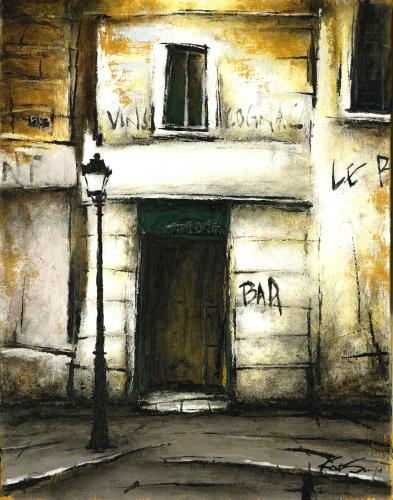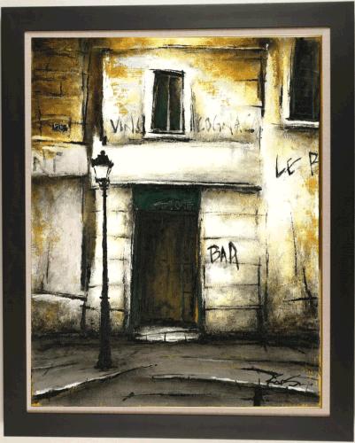 中野克彦さんが油絵の絵画で描いたパリの絵「路地裏のBARのある風景」をぜひご自宅のインテリアやプレゼントの絵としてご購入ください。