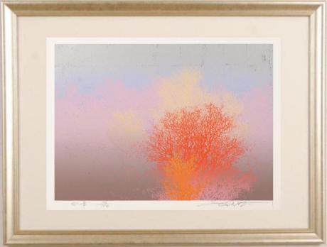 池上壮豊先生がシルクスクリーンの版画で制作した木の絵画「紅景」をぜひご自宅のインテリアやプレゼントの絵としてご購入ください。