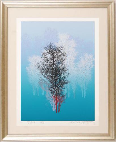 池上壮豊先生がシルクスクリーンの版画で制作した木の絵画「紫遠-9」は、1986年に制作された木の絵です。