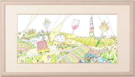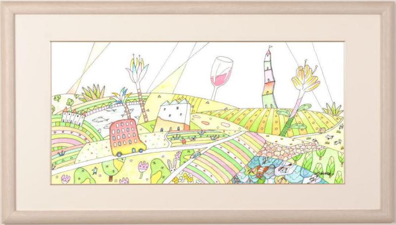 この「赤いバスが走る村」シリーズのインテリアの絵画は、田原健二さんの人気シリーズで、本作品が6作目になります。