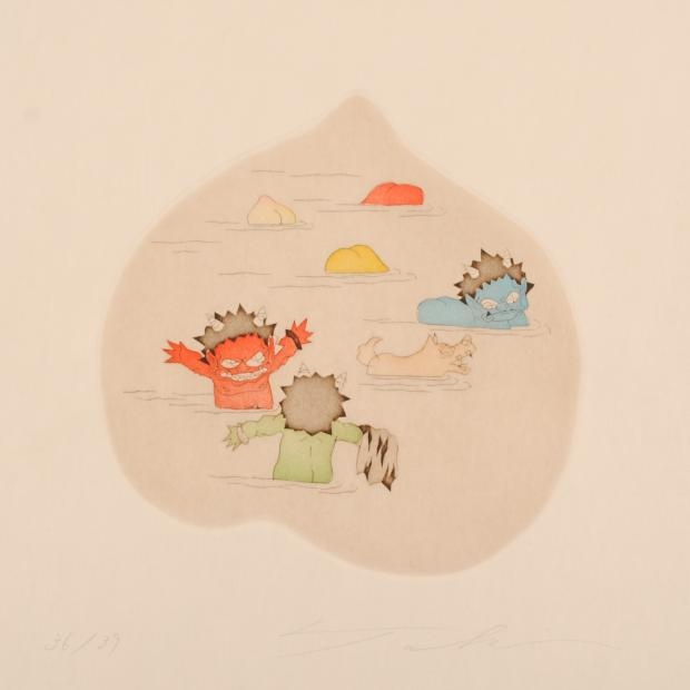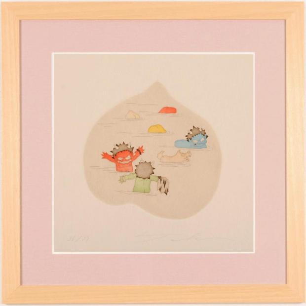 瀧下和之さんが銅版画で制作したインテリア絵画「鬼ヶ島で水遊び」は、2009年にリリースされたインテリアの和の絵です。