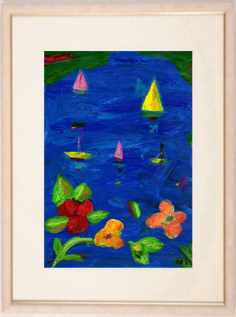一度でいいから、このミクストメディアの絵画に描かれているような南の島に住んでみたいものです。